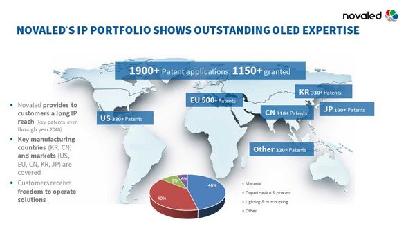 - Novaled provides to customers a long IP reach (key patents even through year 2040)