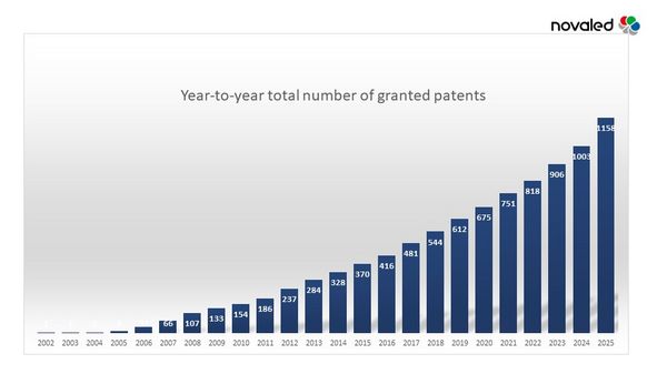 The rapid growth of Novaled granted patents can be seen below. To date, > 1000 patents have been granted.